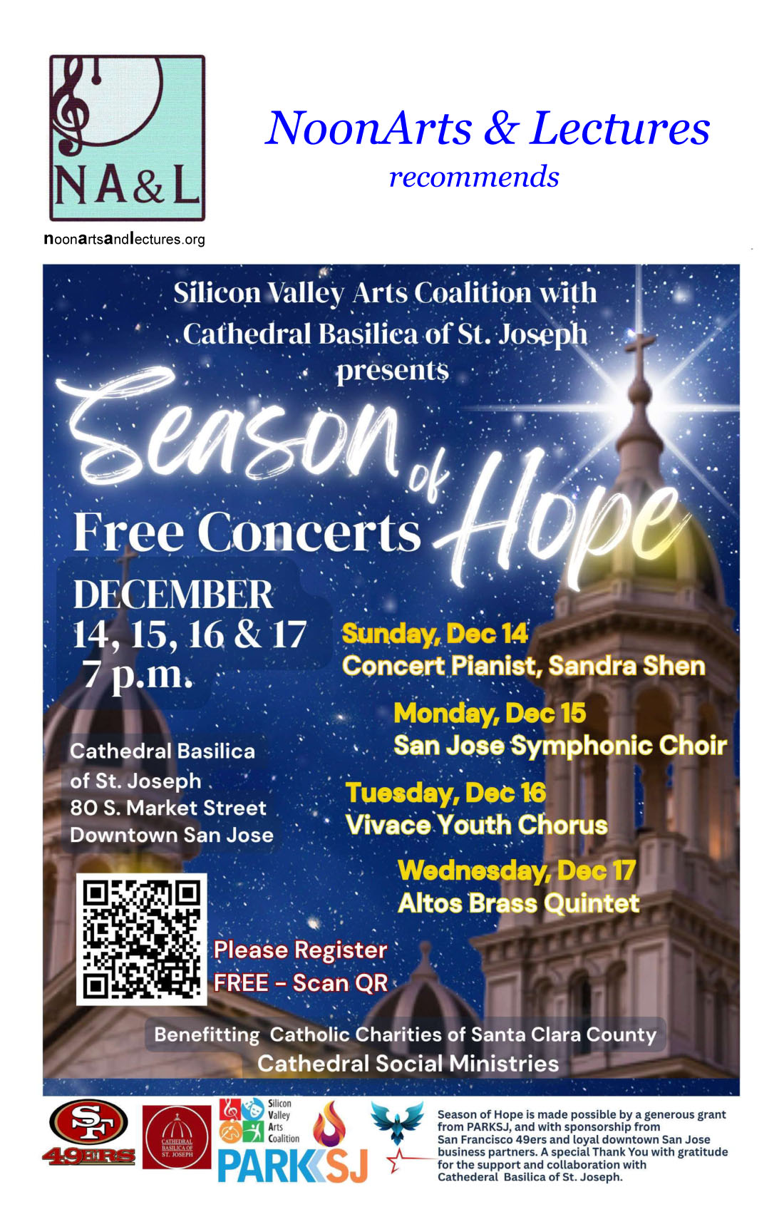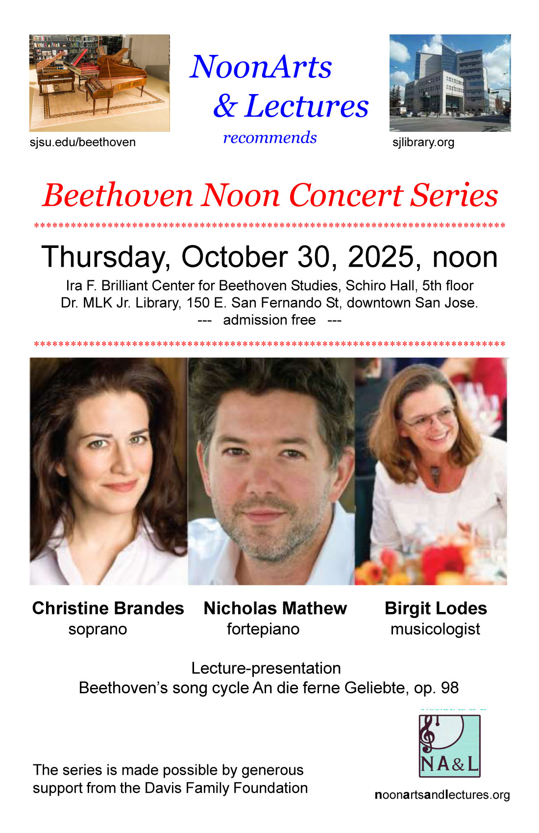 191 P R I O R 45 min admission free NoonArts & Lectures encounters in downtown San Jose (May 2013 - Aug 2025)