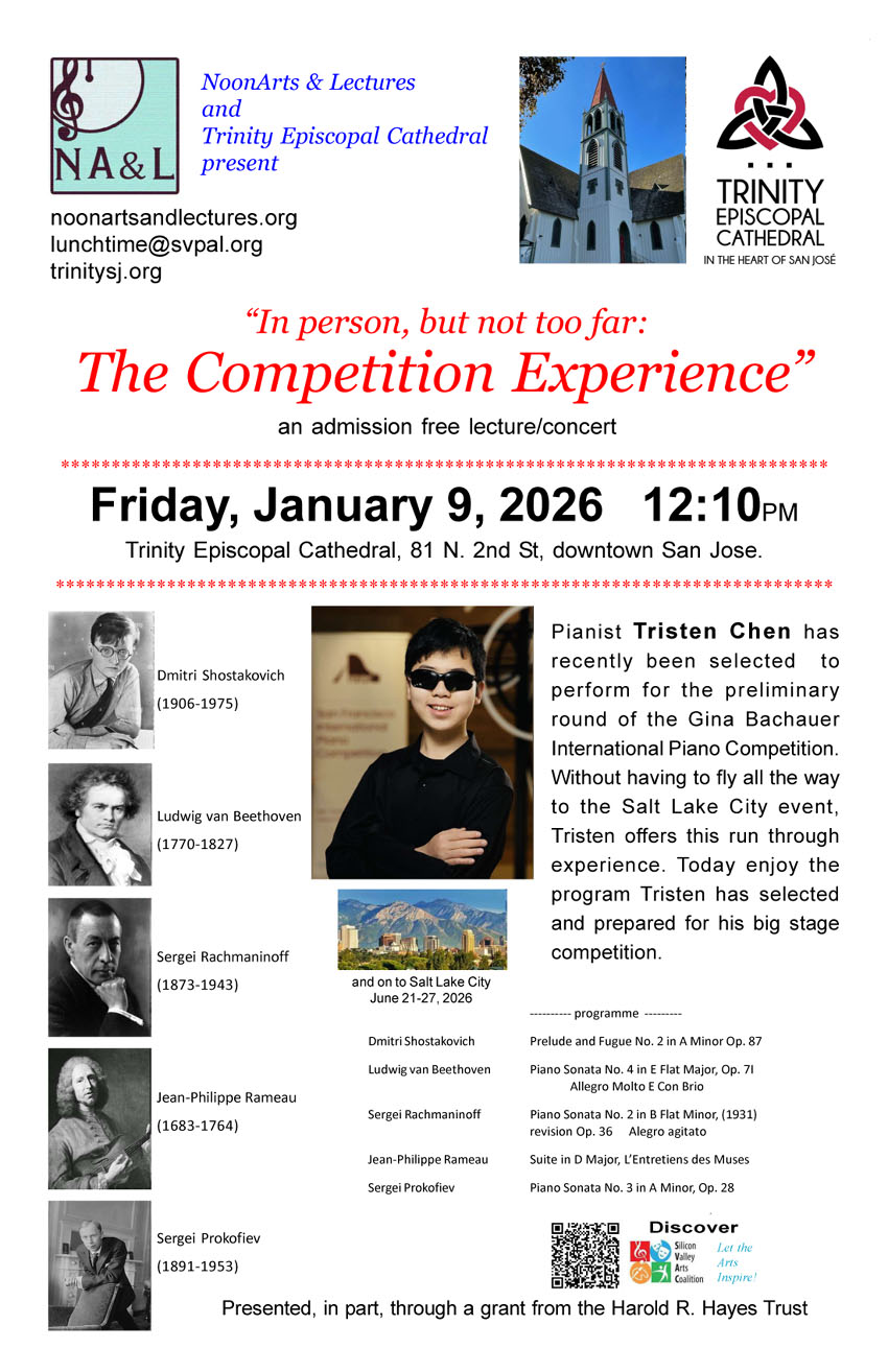 193 prior 45 min admission free NoonArts & Lectures encounters in downtown San Jose (May 2013 - Dec 2025)