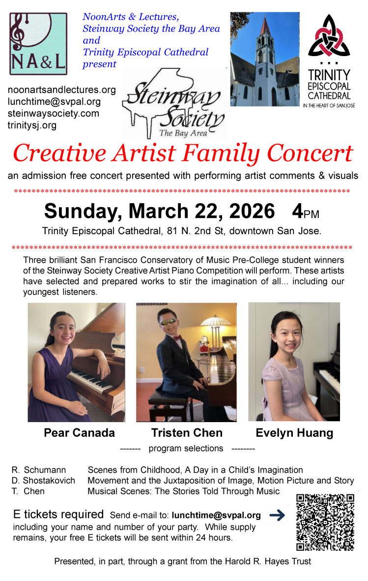193 prior 45 min admission free NoonArts & Lectures encounters in downtown San Jose (May 2013 - Dec 2025)