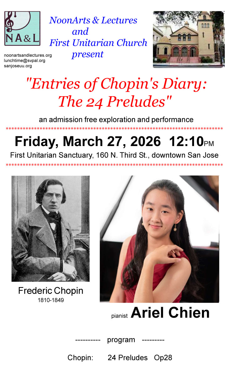 194 prior 45 min admission free NoonArts & Lectures encounters in downtown San Jose (May 2013 - Mar 2026)